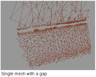 to seal gaps between the boundaries of components in a mesh. This tool works best to eliminate narrow gaps between boundaries. To fill larger openings, use Mesh > Mesh Cleanup > Mesh Hole Fill