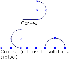 To get concave arcs, you must go back and edit the curve after creating it. See Edit keypoint curves.