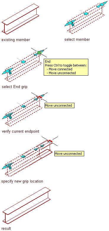 Use this procedure to change a structural member start point or endpoint. You can also change the structural member start and endpoints on the Properties palette.