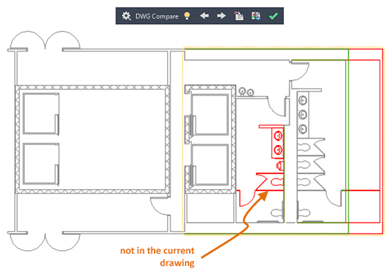 You can import the highlighted differences (red) from the compared drawing into the current drawing. If you do so, these objects will now exist in both drawings and will automatically turn gray. Only the objects that are not in the current drawing can be imported.