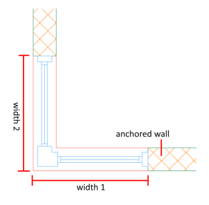 - Width 1: Width 1 is the opening width of the first wall you specify when you insert a corner window. Width 1 is also anchored to the first wall you specify.