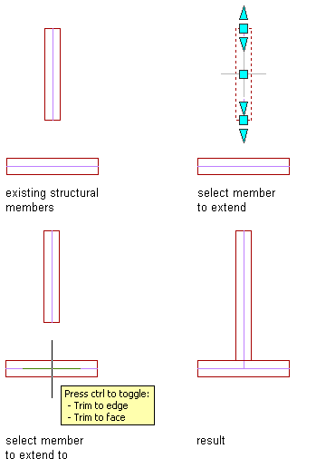 | use the edge or face of an existing object or linework as the trim plane | select the object or linework, and then click the side on which you want members removed. If you want to trim to the face of an object rather than its edge, press Ctrl before selecting the object. |