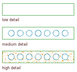 When you create a custom shape, you can define three separate geometries (Low Detail, Medium Detail, and High Detail) to accommodate the different levels of detail in different display representations (for example, Plan Low Detail, Plan, and Plan High Detail). The geometries for the new shape can be set entirely from linework in the drawing area, or you can use an existing custom shape definition as a template and edit it to redefine any of its geometries.
