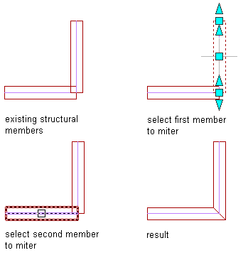 Note: If the value of Trim automatically (on the Properties palette) is Yes for each of the connected structural members, then any kind of grip edit to either member will result in a mitered joint between them.