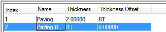 For example, if you want to create a style in which a 2'' paving component is positioned directly above a paving base of variable thickness whose bottom edge is the same as the slab baseline, you would specify the Thickness and Thickness Offset values as follows: