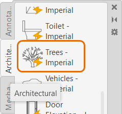 3. Select the Trees - Imperial block from the palette and click anywhere in the drawing area to place the block.