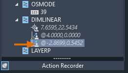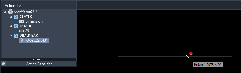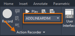 On the ribbon, click Manage tab > Action Recorder panel. From the drop-down list, choose ADDLINEARDIM.