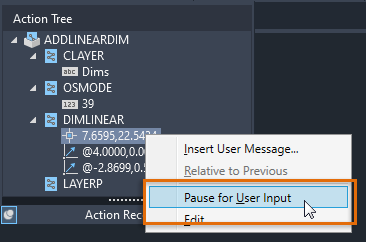Add prompts for user input during playback: enter a value, specify a point, or select objects