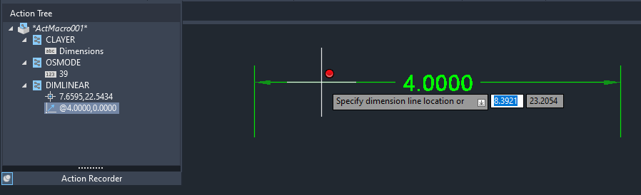 The following steps explain how to playback the ADDLINEARDIM action macro that was recorded earlier: