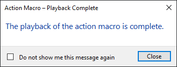 After an action macro has been recorded, it can be played back using one of the following methods: