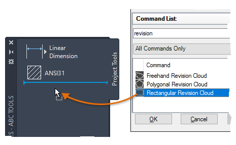 3. In the Commands List, drag the Rectangular Revision Cloud command onto the tool palette.
