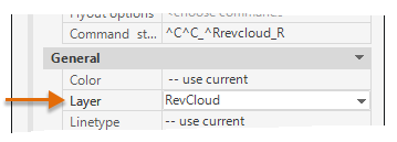 6. In the Tool Properties dialog box, under the General section, click the Layer property and choose the layer to be set current when you use the tool.