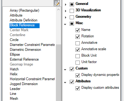 2. In the Objects pane, select Block Reference from the Object Type list.