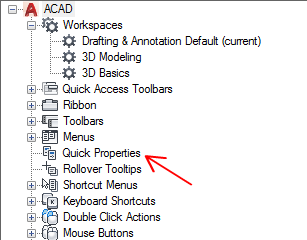 1. In the Customize tab, Customizations In <file name> pane, select Quick Properties.