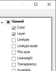 2. In the Properties pane, click the check boxes next to the general properties you want the Quick Properties palette to display for all object types.