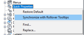 3. Click Apply Rollover Tooltips Settings to Quick Properties Palette.