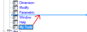 Use the CUI Editor to control the display of the Quick Access toolbar, ribbon tabs and panels, tool palettes, toolbars, and pull-down menus.