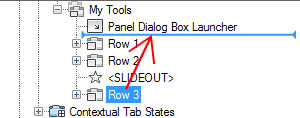 - Click the plus sign (+) next to the ribbon panel where you want to assign a command to its Panel Dialog Box Launcher node.