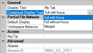 - In the Properties pane, Contextual Display Type box, select Full or Merged.