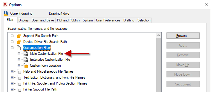 Customization (CUI/CUIx) files define user interface elements such as the Quick Access toolbar (QAT), ribbon panels and tabs, palettes, “classic” toolbars, and pull-down menus. Based on the previous release from which you are migrating, the Migrate Custom Settings utility looks for the CUI or CUIx file specified by the Main Customization File setting. The main customization file is migrated in addition to the partial customization files loaded in the main CUI/CUIx file.