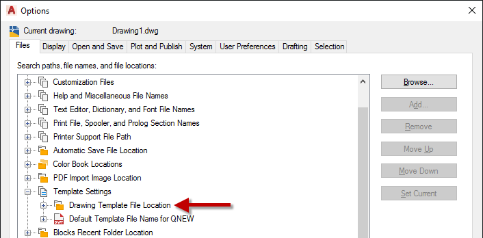 Drawing template (DWT) files are used to create new drawings. The drawings created using a DWT file contain all of the styles and drawing objects defined in the DWT file. The custom DWT files from the previous release are migrated into a subfolder named after the release in which they were migrated; the naming convention of the subfolder is Product Name Templates. The Product Name Templates subfolder is created under the folder defined by the Drawing Template File Location setting.