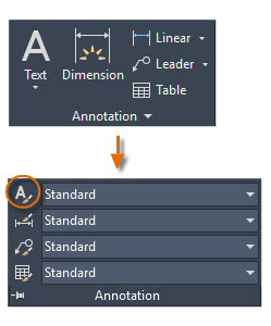 As with several other annotation features, multiline text provides a lot of settings. You can save these settings as a text style using the STYLE command, and then you can access the text styles you've saved by clicking the drop-down arrow on the Annotation panel. The current text style is displayed at the top of the drop-down list.