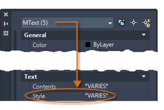 Tip: You can use the Properties palette to control the text style used for one or more selected multiline text objects. For example, after selecting five notes that use different styles, click the Style column and choose a style from the list.