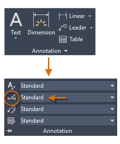 To open the Dimension Style Manager, click the indicated button. You can create dimension styles that match nearly any standard, but you will need to invest time to specify them completely. For this reason, you should save any dimension styles that you create in one or more drawing template files.
