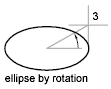 Creates an ellipse using a center point, the endpoint of the first axis, and the length of the second axis. You can specify the distances by clicking a location at the desired distance or by entering a value for the length.