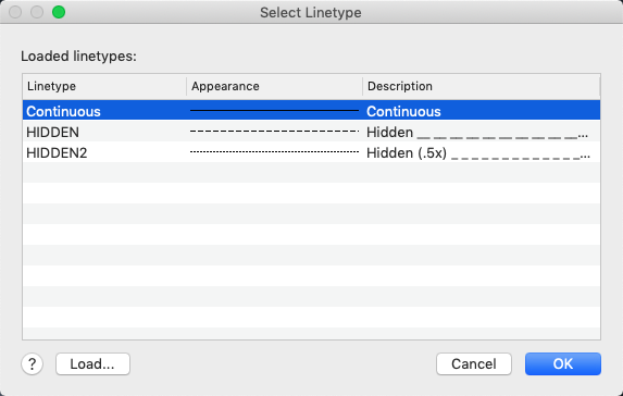 Displays the Load or Reload Linetypes dialog box, in which you can load selected linetypes into the drawing and add them to the list of linetypes.