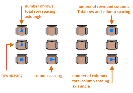 After you select the objects that you want to duplicate, which are called the source objects, you choose the arrangement pattern. There are three types of arrays: