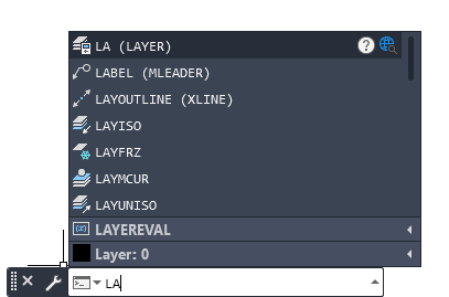 By default, the name of a command or system variable is automatically completed as you type it. A suggestion list of commands and system variables that use the same letters is also displayed. You can control the settings for these features in the Input Search Options dialog box.