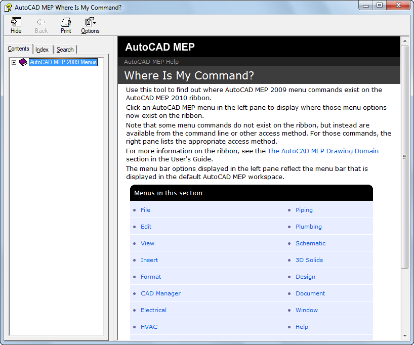 The Where is my command? tool is a help file that lists all commands by their previous menu location and displays their current location on the ribbon.