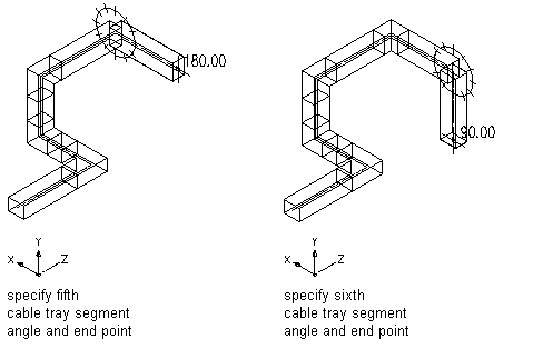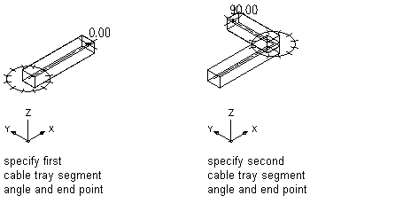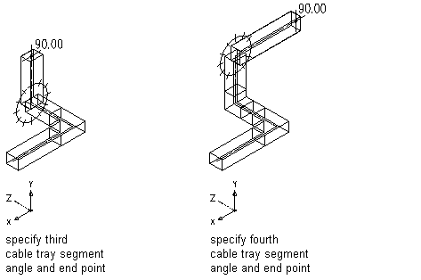 - Enter p (plane), and draw 2 duct segments in the third UCS plane.