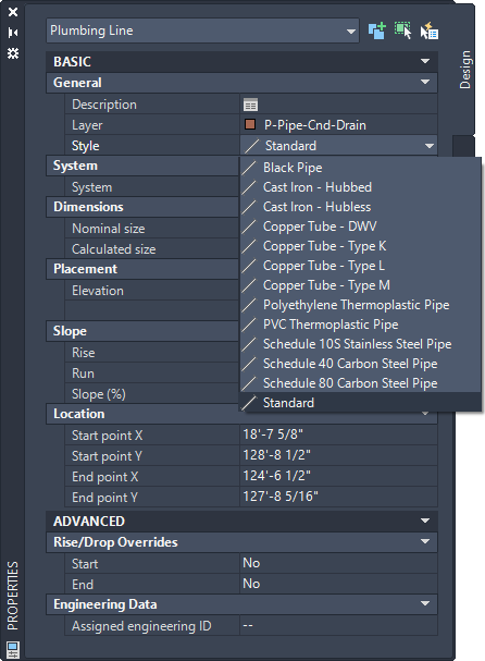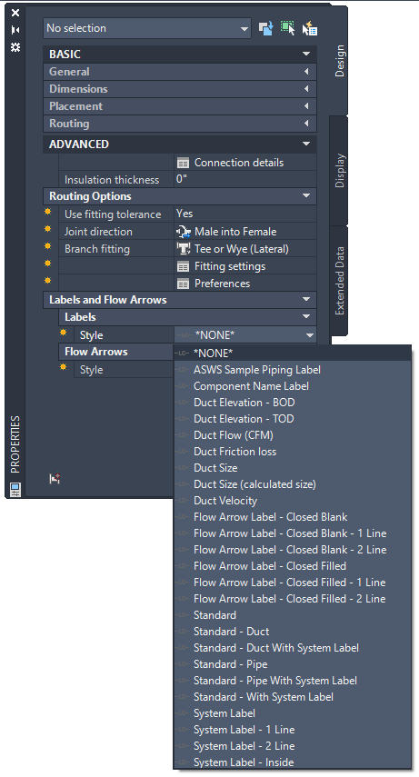 On the Properties palette, you can also assign a style for the label and flow arrow associated with a piping or plumbing object.