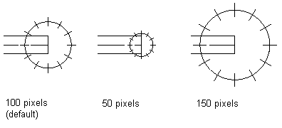 You can also change the color and size of the Compass display to enhance the visibility of the Compass as it overlaps and aligns with objects in your drawing. The Compass size is expressed in pixels and remains constant regardless of the zoom scale factor you apply to a drawing.