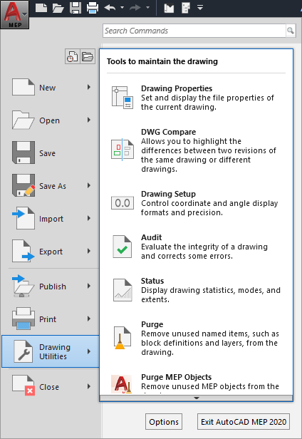 - Publish drawings to Mapguide, DWF, Seek, and eTransmit