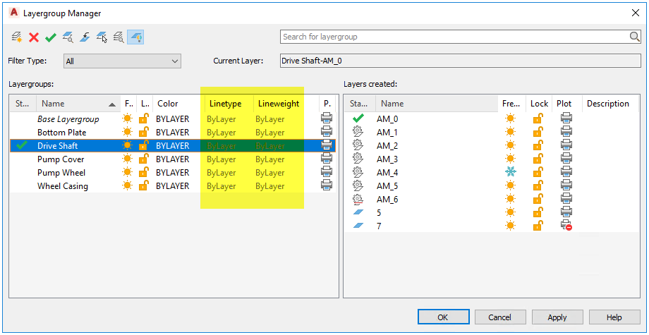 In the Layergroup Manager, you can now specify the layergroup linetype and lineweight, just like how you specify the layergroup color.