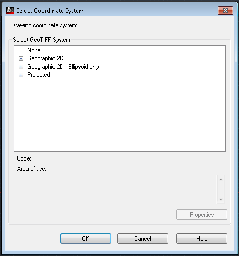 Specifies the available GeoTIFF coordinate systems in three categories: