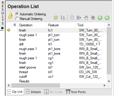 Results window shows all of the operations needed to machine the features. A yellow warning