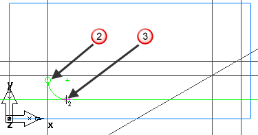 - Click Construct tab > Geometry panel > Arc menu > 2 Points, Radius.