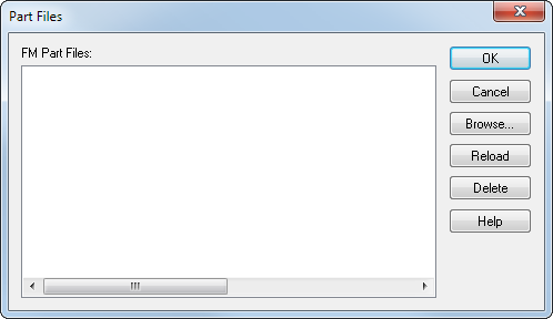 Delete — Removes the selected part file from the FM Part Files list. This option is unavailable for part files currently being used by the multiple-fixture document.