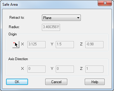 The Safe Area dialog affects the approaches, plunges, and retracts of a 5-axis simultaneous operation.