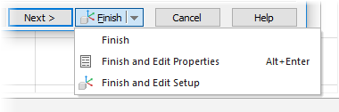 Finish and Edit Setup — Accept the default settings in the remaining pages, close the wizard, and display the Setup Properties dialog, which enable you edit the current Setup.