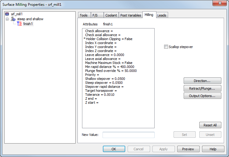 Tolerance — This attribute controls how accurately the toolpath follows the surface. If your part appears faceted, set the tolerance to a lower value.