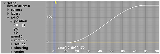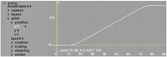 - ease(10, 50) * 100 returns a standard S-curve from 0 to 100between frames 10 and 50.