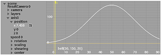 - bell(10, 100, 3) returns a bell curve centred around frame10 with a maximum height of 100 and a width distribution of 3.