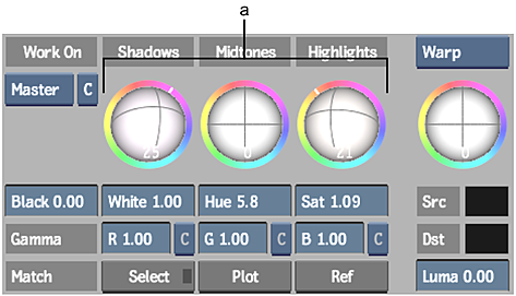 Because you can modify the range that the Midtones trackball affects, the trackball will always return to its default reference value—when you release the Midtones trackball and apply the change, it will return to 0.