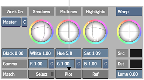 Tip: To achieve true white, drag the Highlights and Midtones trackball to move the plot sample to the centre of the 2D vectorscope.