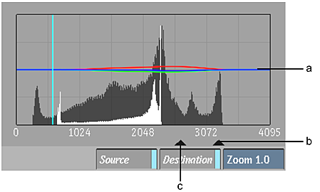 - Modifies horizontal RGB curves in the 2D luma histogram. These curves represent the amount of chroma tint you apply to the image. For example, if the red and green curves are above the middle line while the blue curve is below the middle line, you are adding a yellow tint to the midtones components of your image.